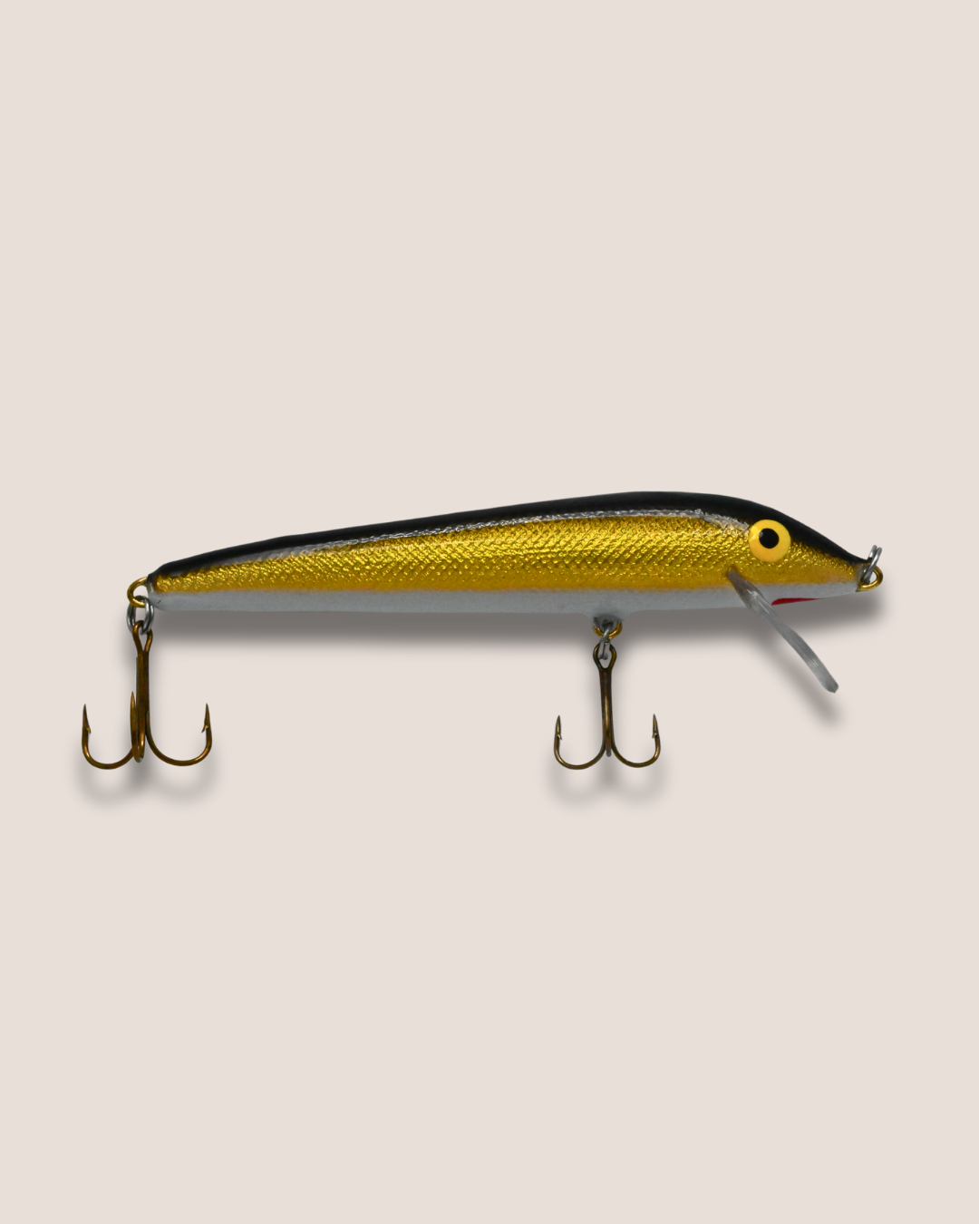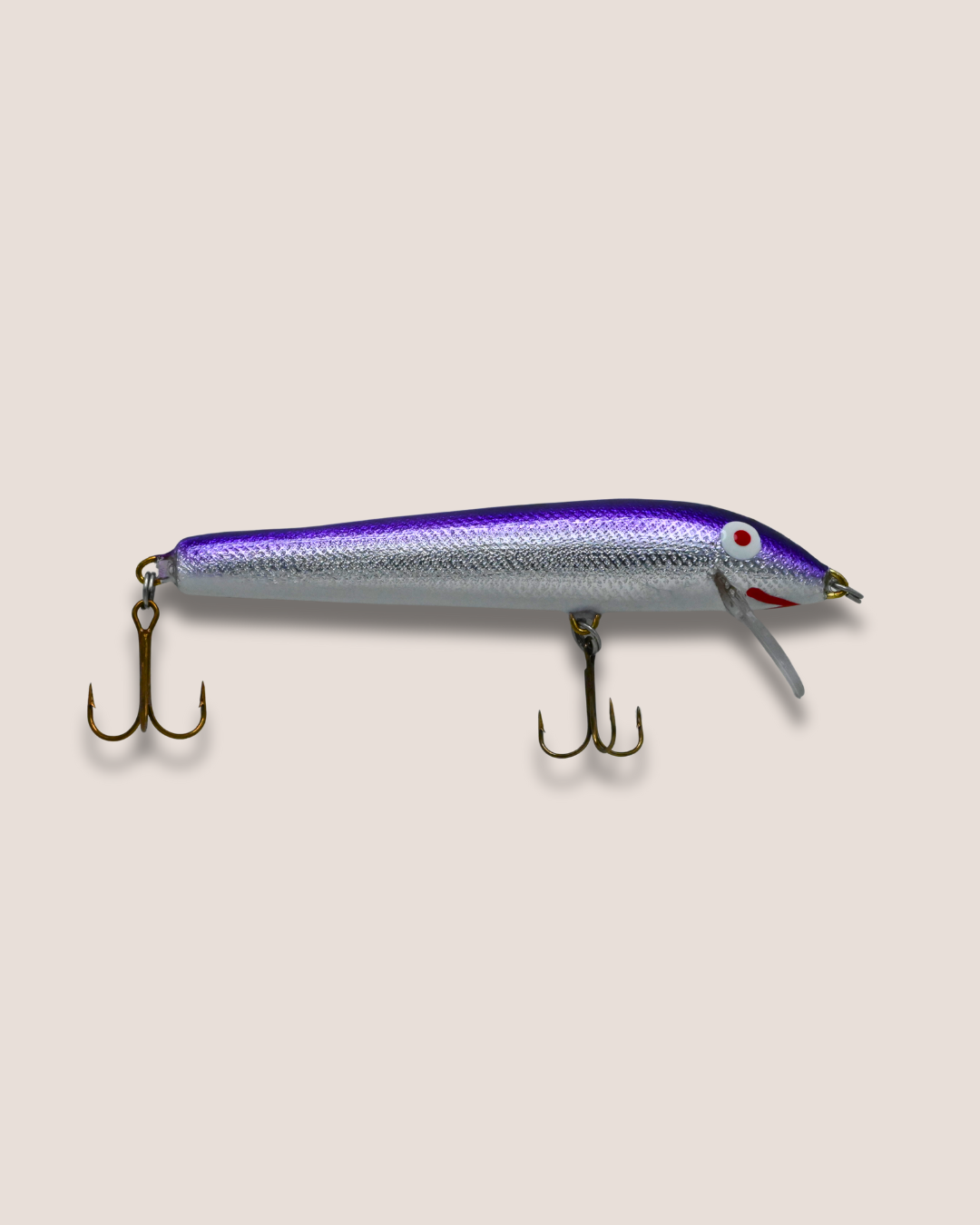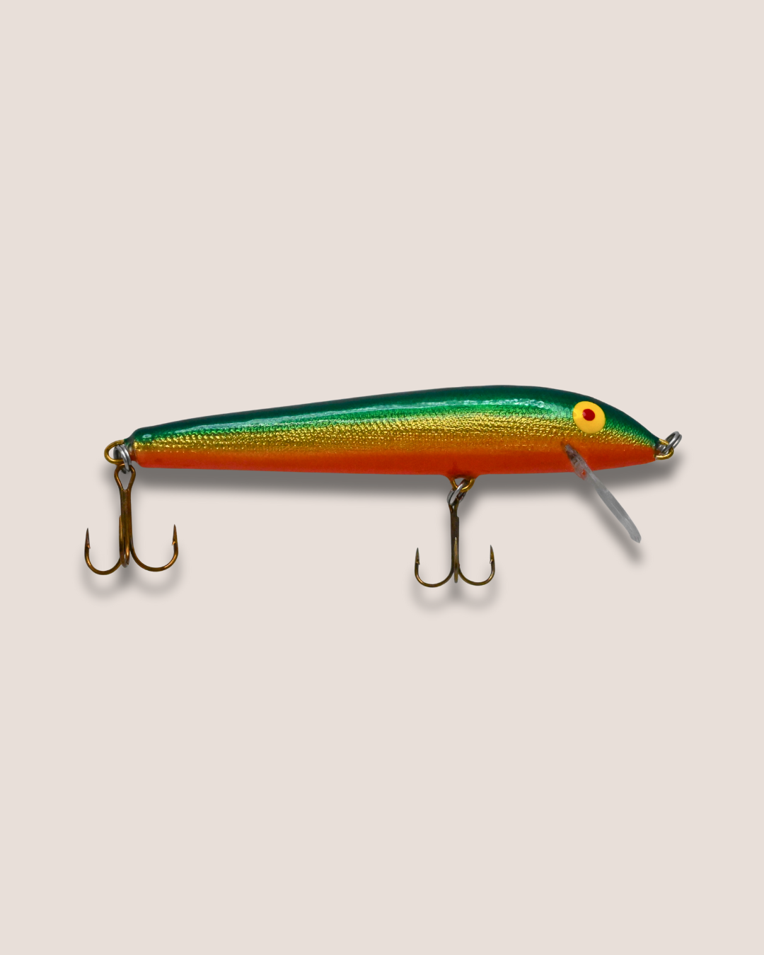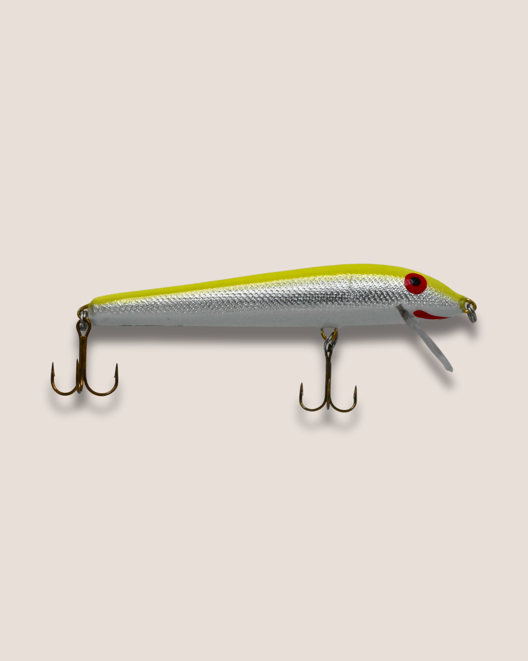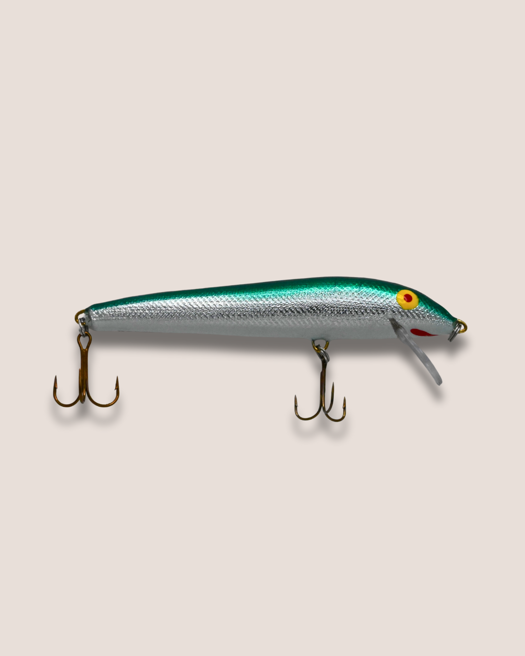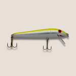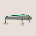 Balsa wood, 4.5 inches long, 7.0 g, dives 4-6 feet, floats at rest.